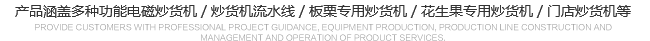 公司產品涵蓋多種功能電磁炒貨機,炒貨機流水線,板栗專用炒貨機,花生果專用炒貨機,門店炒貨機等。 規格品種齊全、產品質量穩定可靠,產品遠銷國內外。